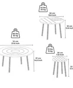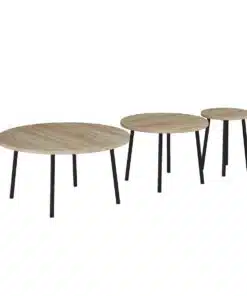 סט שולחנות קפה עגולים בגבהים וגדלים שונים. השולחנות עשוים משבבית דחוסה עפ חיפוי מלמין איכותי יצוק , מסגרת השולחן עשויה ממתכת אל חלד בצבע שחור .