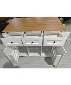 העיצוב המודרני והנקי של האי למטבח הלבן משתלב בקלות בכל סגנון – כפרי, מודרני או קלאסי. הקווים הפשוטים והגוון הבהיר יוצרים תחושת מרחב ואסתטיקה, תוך שמירה על פרקטיות יומיומית עם מבנה נוח ונגיש.