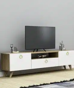 מזנון טלוויזיה עם מגירה ובגוון לבן ועץ לאטה