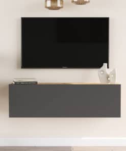 מזנון צף תלוי מעוצב בצבע לבן 135 ס"מ אורך עם קלאפת אחסון עומק 30 ס"מ – פתרון אחסון מודרני לסלון
