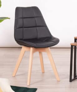 כסאות לפינת אוכל דמוי עור שחור עם רגלי עץ