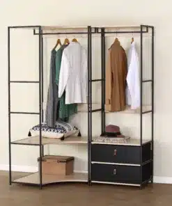 ארון מדפים פינתי פתוח- פתרון מודולרי חכם עם מדפים ומוט תליה