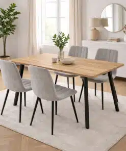 פינת אוכל עם 4 כיסאות בגוון אפור בהיר