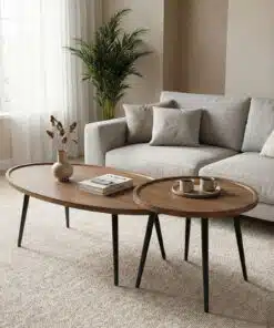 זוג שולחנות סלון מעוצבים בגוון אגוז