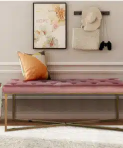 ספסל המתנה מעוצב בבד קטיפה ורוד