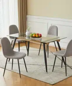 פינת אוכל מודרנית זכוכית – שולחן זכוכית מחוסמת ו-4 כיסאות מרופדים