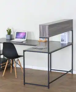 עמדת עבודה פינתית בצורת L עם מדפי אחסון – אגוז משולב שחור