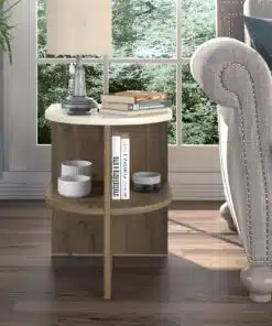 שולחן צד עגול לסלון עם מדפים