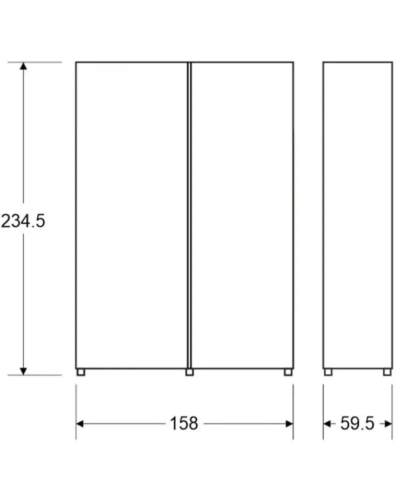 מידות: גובה: 234.5 ס"מ | עומק: 59.5 ס"מ | אורך: 158 ס"מ.