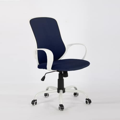 כיסא מחשב בבד קטיפה כחול כהה משולב עם מסגרת לבנה