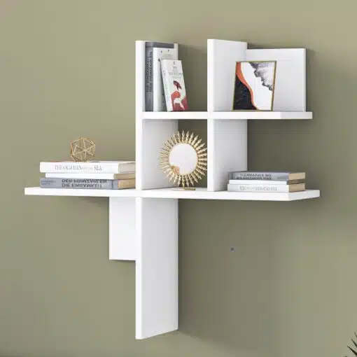 יחידת מדפי כוורת לתלייה על הקיר בצבע לבן , עשוי מעץ מתועש עם חיפוי מלמין יצוק