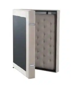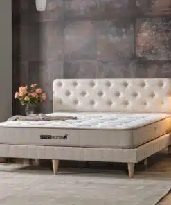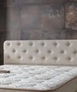 מיטת יחיד מרופדת בבד בז' – חום בהיר , בסיס המיטה עשוי ממתכת אל חלד , ראש המיטה עשוי מאם די אף בחיפוי ספוג איכותי בצפיפות גבוה המבטיח עמידות לאורך זמן.