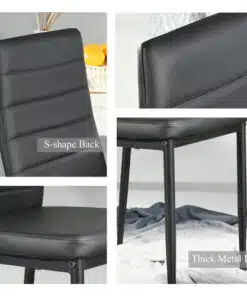 הסט מגיע עם 4 כסאות מרופדים ונוחים , רגלי הכיסא עשויות מתכת . המושב והמשענת מרופדים היטב בספוג איכותי בצפיפות גובה לעמידות לאורך זמן.