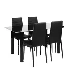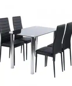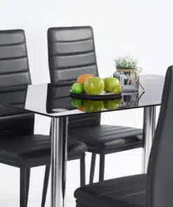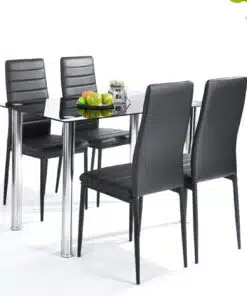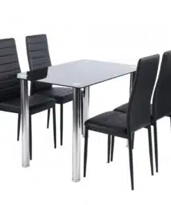 פינת אוכל עם זכוכית שחורה ו-4 כסאות
