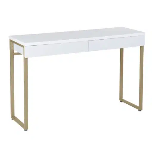 קונסולה לכניסה לבית עם 2 מגירות אחסון ומדף תחתון. עשויה מעץ מתועש עם חיפוי מלמין יצוק בגוון צבע אגוז.