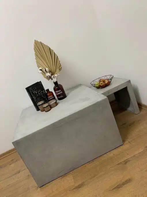 שולחן דמוי בטון לסלון עשוי מפיברגלאס ומתאים לשימוש פנים וחוץ . השולחן מעוצב בסגנון נקי וקווים ישרים.
