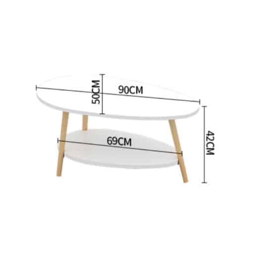 שולחן סלון אובלי מעוצב בצבע לבן משולב גם רגליים מעץ