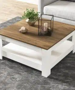 שולחן סלון מרובע מעץ מתועש עם חיפוי מלמין יצוק עם6 מדף תחתון לאחסון .