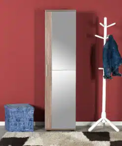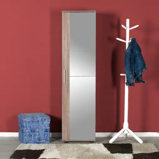ארון דלת אחת לבגדים או נעליים או ארון שירות בצבע לבן או חום בהיר עם 10 מדפים לאחסון נוח ומסודר.
