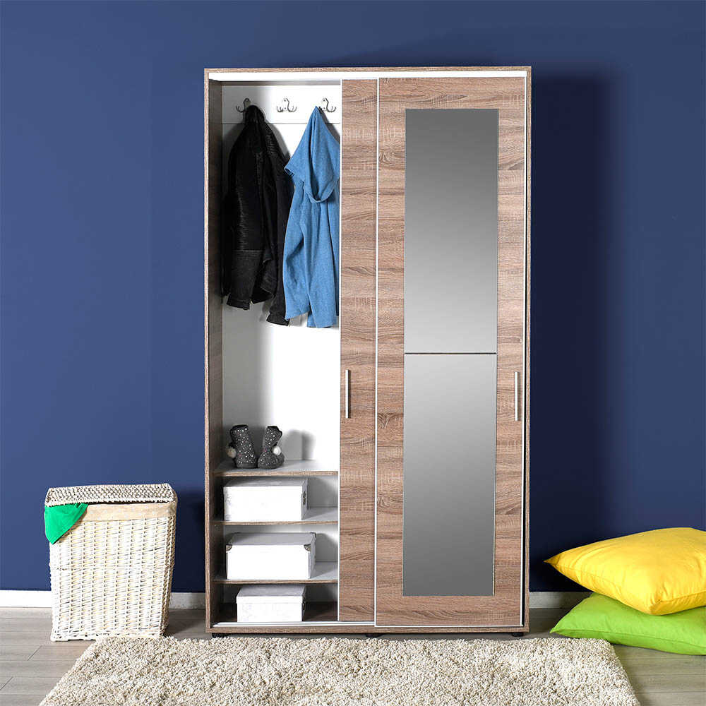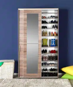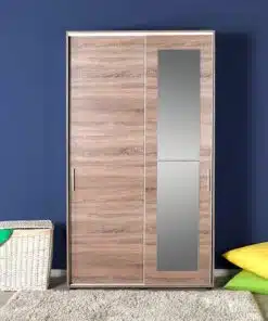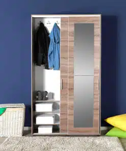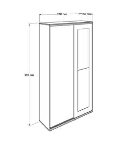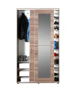 ארון הזזה שתי דלתות עם מראה המשלב תלייה ומדפים ומתאים לארון בגדים , ארון שירות , או אחסון כללי.