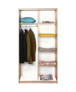 ארון הזזה רוחב 94 ס"מ צד תלייה וצד מדפי אחסון , ארון פרקטי ונוח כולל 6 מדפי אחסון ומתקן תלייה לקולבים. בארון יש סה"כ 6 מדפי אחסון חלקם מודולריים וניתן לרווח אותם ע"פ הצורך.