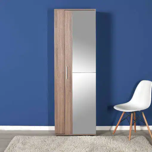 ארון המדפים העשוי מעץ בגוון טבעי, משלב בין פונקציונליות לאסתטיקה. עם 10 מדפים מודולריים שניתן להתאים לגובה ולמרחק ביניהם, הארון מציע גמישות מקסימלית לאחסון מגוון פריטים. המראה המובנית מוסיפה נופך של אלגנטיות ומאפשרת לך להתארגן בקלות.
