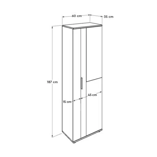 ארון מדפים עם מראה , יוכל לשמש כארון בגדים , ארון נעליים או ארון שירות. בארון יש 10 מדפים לאחסון. בחזית דלת הארון מראה ענקית. הארון עשוי משבבית דחוסה בציפוי מלמין. הארון המגיע עם שני דלתות האחת ברוחב 45 ס"מ והשנייה ברוחב 15 ס"מ.