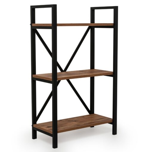 ארון מדפים פתוח לספרים לנוי או למשרד עשוי מעץ מתועש עם חיפוי מלמין פרזול שחור חזקה ויציבה. הארון בעל 3 מדפים גדולים ונוחים לאחסון.