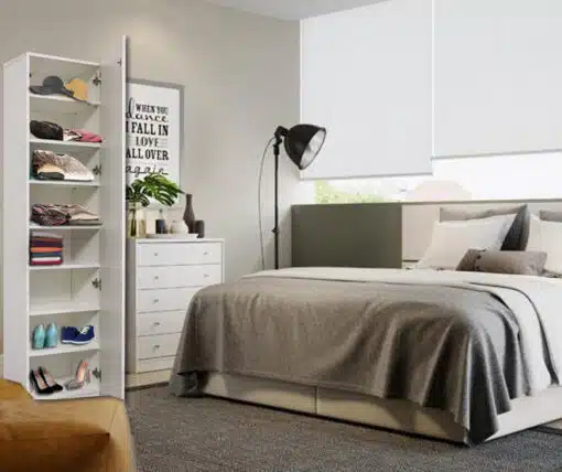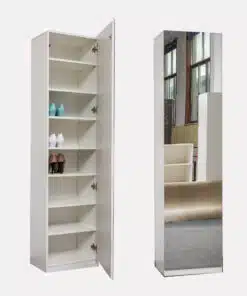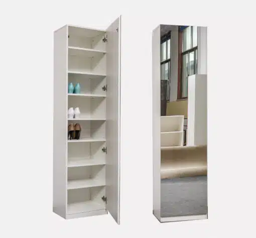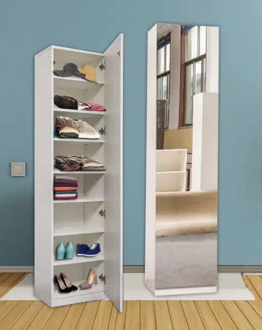הארון אסתטי ומעוצב עם דלת מראת גוף מלא . עם עומק סה"כ של 33 ס"מ ארון זה מתאים או נישה. אז אם גם אתם החלטת לשים קץ לבלגן הנעליים ונמאס לכם לראות את נעליים שלכם אחד על שני או מפזורים בחדר ארון נעליים זה יעשה לכם סוף סוף סדר בבלגן.