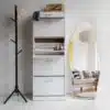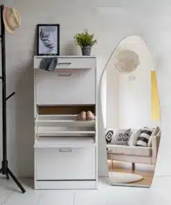 ארון אחסון נעליים מחולק ל-3 תאים לאחסון נעליים ומגירה עם שליפה קלה ונוחה.