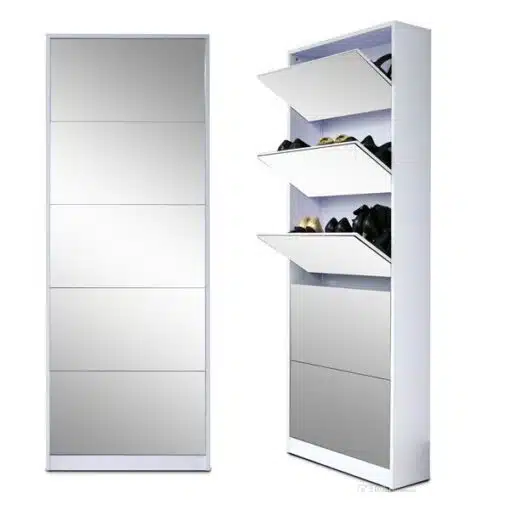 פתרון אחסון נעליים חכם עם מראה מעוצבת – 5 מגירות מרווחות