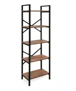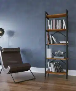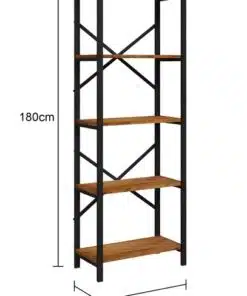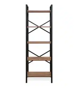 ארון ספרים לסלון מעץ ומתכת עם 5 מדפים מרווחים לאחסון. הספרייה חזקה ויציבה , מסגרת הספרייה עשויה ממתכת אל חלד צבועה בצביעה אלקטרוסטטית איכותית בצבע שחור, גב הספרייה מוחזק עם מוטות חיזוק.