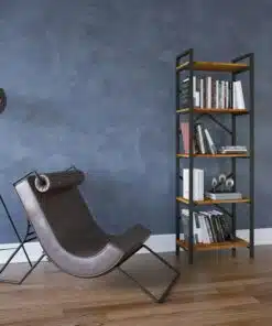 ארון ספרים לסלון מעץ ומתכת עם 5 מדפים מרווחים לאחסון. הספרייה חזקה ויציבה , מסגרת הספרייה עשויה ממתכת אל חלד צבועה בצביעה אלקטרוסטטית איכותית בצבע שחור, גב הספרייה מוחזק עם מוטות חיזוק.