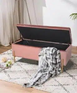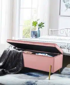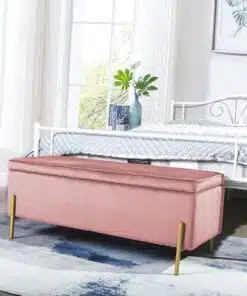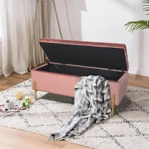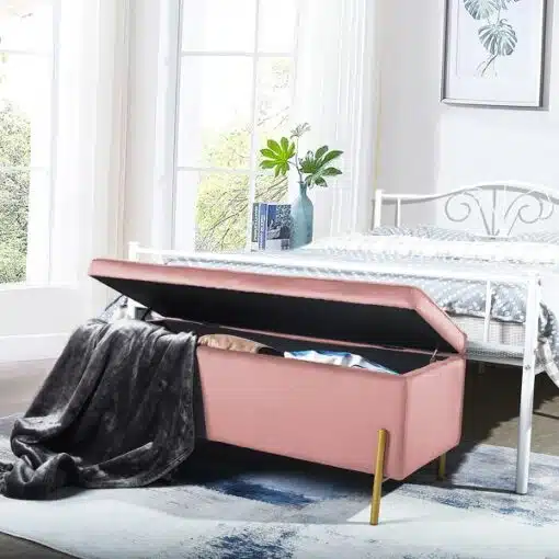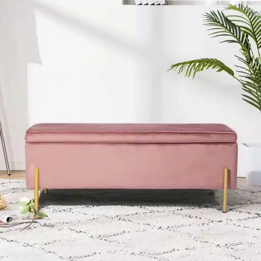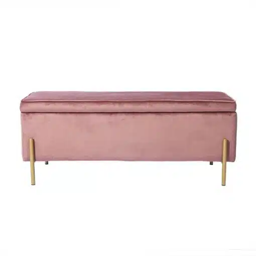הוסיפו נופך מלכותי לחדרכם עם הדום אחסון מרופד בבד קטיפה ורוד עתיק מבית סטייל מאסטר!