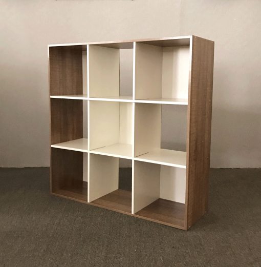 כוורת מעוצבת בצבע לבן ועץ בגוון שיטה משולב עם לבן עם 9 תאי אחסון