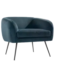 כורסא מעוצבת מודרנית עם רגלי מתכת ובד קטיפתי מפנק . הכורסא מעוצבת מרופדת בספוג ובד איכותי ומסגרת הכורסא עשויה מעץ מלא. הבד בצבע אפור ורגלי הכורסא מפרזול שחור.