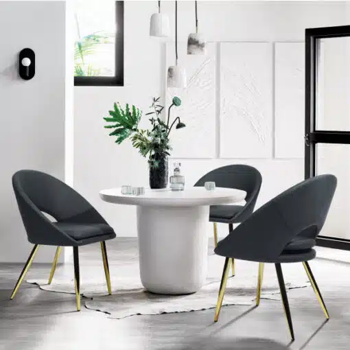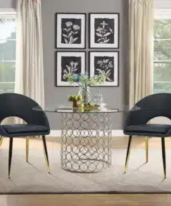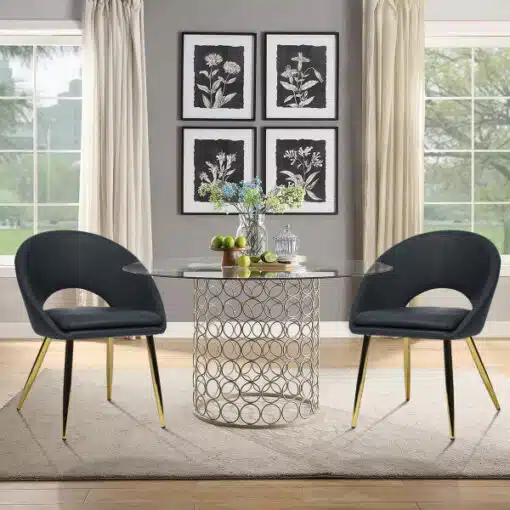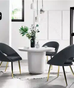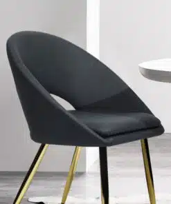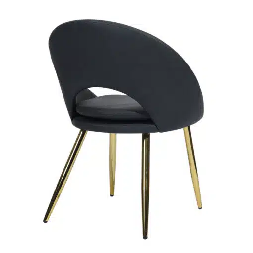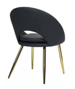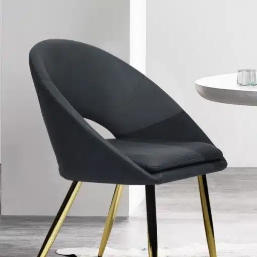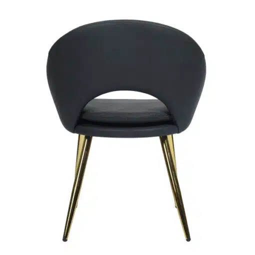 כורסא מדמוי עור שחור מעוצבת , כורסא זו מרופדת היטב בספוג איכותי ועמיד בצפיפות ומרופדת בדמוי עור שחור איכותי תפור בתפירה מיוחדת ובגימור מושלם על גבי הכיסא . רגלי הכיסא עשויות ממתכת אל חלד בצביעה אלקטרוסטטית איכותית בצבע זהב מעניקות לכורסא עיצוב יוקרתי.