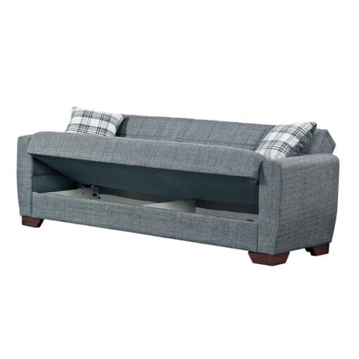 כורסא תלת מושבית נפתחת למיטה עם ארגז מצעים גדול לאחסון.  הכורסא מרופדת היטב בבד איכותי ועמיד וקל לניקוי וספוג בצפיפות גבוה המבטיח עמידות ונוחות לאורך זמן. הכורסא מגיעה עם שני כריות נוי מתנה.