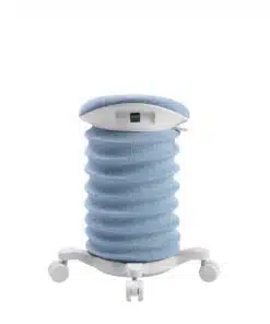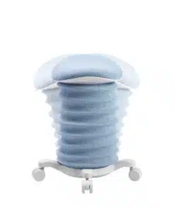 מידות ופונקציות מרכזיות: כוונון גובה בין 46–58 ס״מ, סיבוב מושב 360°, ידית נשיאה מובנית, גלגלים כפולים עם נועל בטיחות. מושב סאדל הפועל ככיסא תומך המאפשר ישיבה בתנועה והפעלה שרירית עדינה.