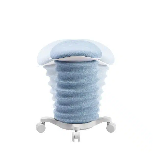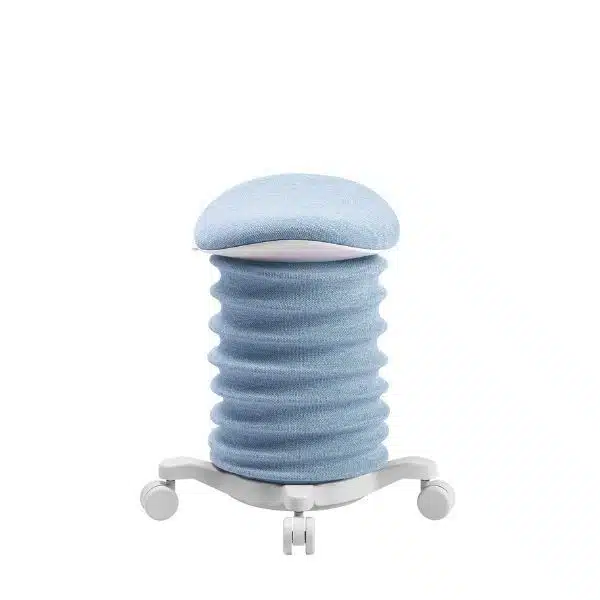מידות ופונקציות מרכזיות: כוונון גובה בין 46–58 ס״מ, סיבוב מושב 360°, ידית נשיאה מובנית, גלגלים כפולים עם נועל בטיחות. מושב סאדל הפועל ככיסא תומך המאפשר ישיבה בתנועה והפעלה שרירית עדינה.