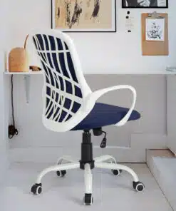 כיסא מחשב בבד קטיפה כחול כהה משולב עם מסגרת לבנה
