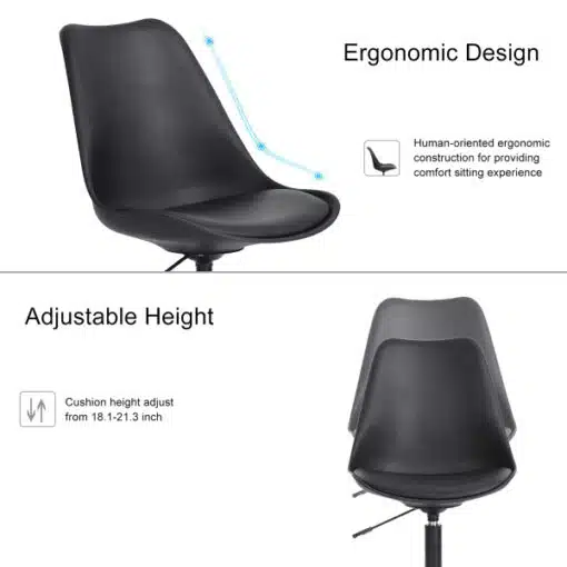 - נוחות מרבית: מושב מרופד בדמוי עור איכותי ובסיס יציב מבטיחים ישיבה נוחה וארוכה.