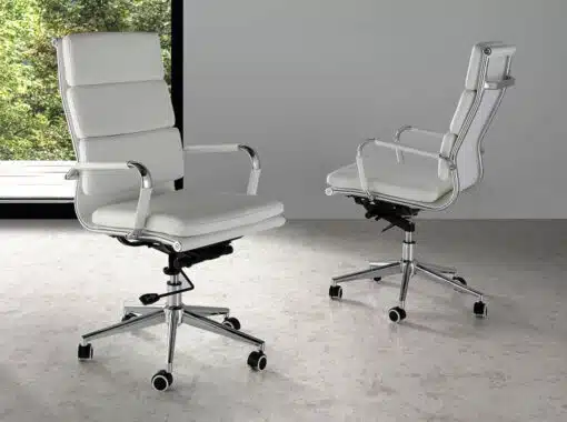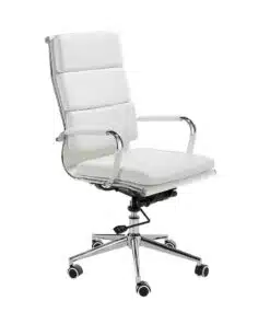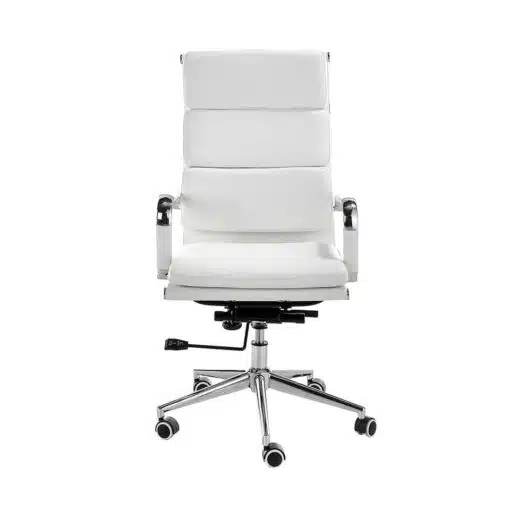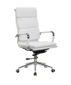 כיסא המנהלים שלנו, מעוצב בדמוי עור לבן, הוא השילוב המושלם בין סטייל לפונקציונליות. הכיסא בנוי מחומרים איכותיים ועמידים, ומציע חווית ישיבה יוצאת דופן.