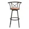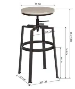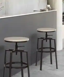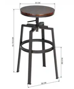 כסאות בר בסגנון רטרו משולבים עץ וברזל, עם מגנון בסגנון הברגה הכיסאות מתכווננים ביןם 65-75 ס"מ על ידי בורג ההברגה בתתתית המושב . בסיס ומסגרת הכסאות עשויה ממתכת שחורה אל חלד חזקה, עמידה ומספקת יציבות גובה, המושב עשוי אם די אף בגוון חום- אגוז או קיים גם בצבע אלון.