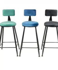 כסאות בר  בעיצוב רטרו בבד קטיפה תכלת