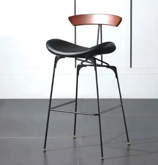 כסאות בר בעיצוב רטרו מהמם, עשויים ממתכת אל חלד חזקה ויציבה, צבוע בצביעה אלקטרוסטטית איכותית בצבע שחור , המושב מרופד בדמוי עור שחור איכותי ובספוג בצפיפות גבוה המבטיח עמידות ונוחות לאורך זמן, משענת הגב עשויה מעץ מלא מכופף בגימור מושלם .