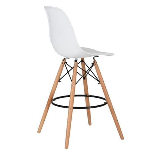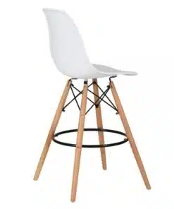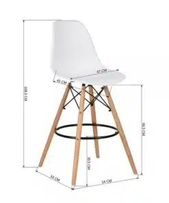 כסאות בר מעוצבים בצבע לבן מפלסטיק פולימר עמיד וקל לניקוי. כסאות מעוצבים בסגנון מודרני נוחים ופרקטים לאי במטבח ולדלפק . בסיס ורגלי הכסאות משולבים עם גימור עץ בהיר ומתכת שחורה אל חלד . משענת רגליים עגולה בסיס הכיס להנחת הרגליים ונוחות מקסימאלית.