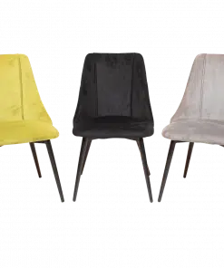 כסאות לפינת אוכל בבד קטיפה מפנק ואיכותי , בסיס הכסאות ממתכת אל חלד בצבע שחור . הכסאות מרופדים היטב בספוג איכותי בצפיפות גובה ובד קטיפה איכותי ועמיד דוחה כתמים בגוון אופנתי.