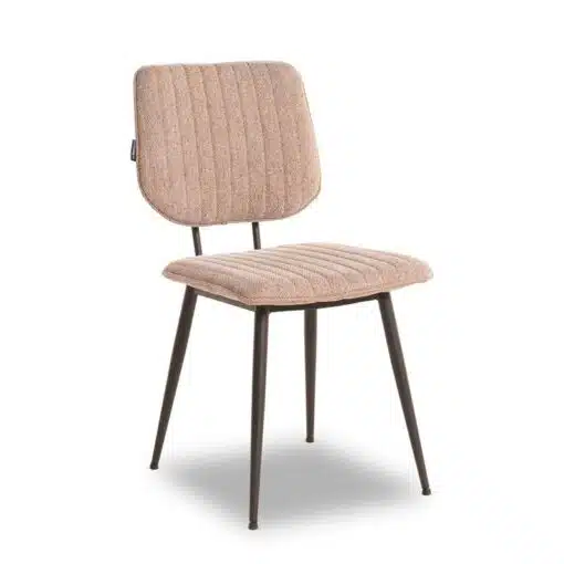 כסאות פינת אוכל מרופדים בבד חום בהיר איכותי וקל לניקוי וספוג בצפיפות גובה המבטיח עמידות לאורך זמן ונוחות מרבי. מסגרת הכסאות עשויה ממתכת אל חלד חזקה ועמידה בצבע בגוון שחור.