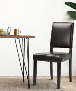 הכסאות מרופדים בדמוי עור איכותי וקל לניקוי בצבע חום כהה.